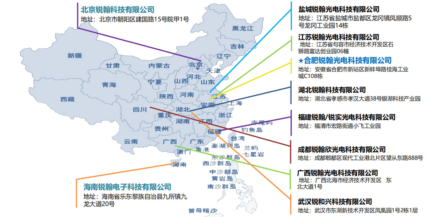 锐翰科技集团化经验管理,多区域靠近客户设置工厂,快速优 质服务客户。同时拥有一定规模的设备储备,可以灵活应对客户产能配置,可以提供加工服务,也可以提 供设备租赁服务。在设备调配、融资渠道、工程技术人员调配、不同区域操作人员调配都有优势,是公司的核心竞争能力,在业界中有领先的竞争力。